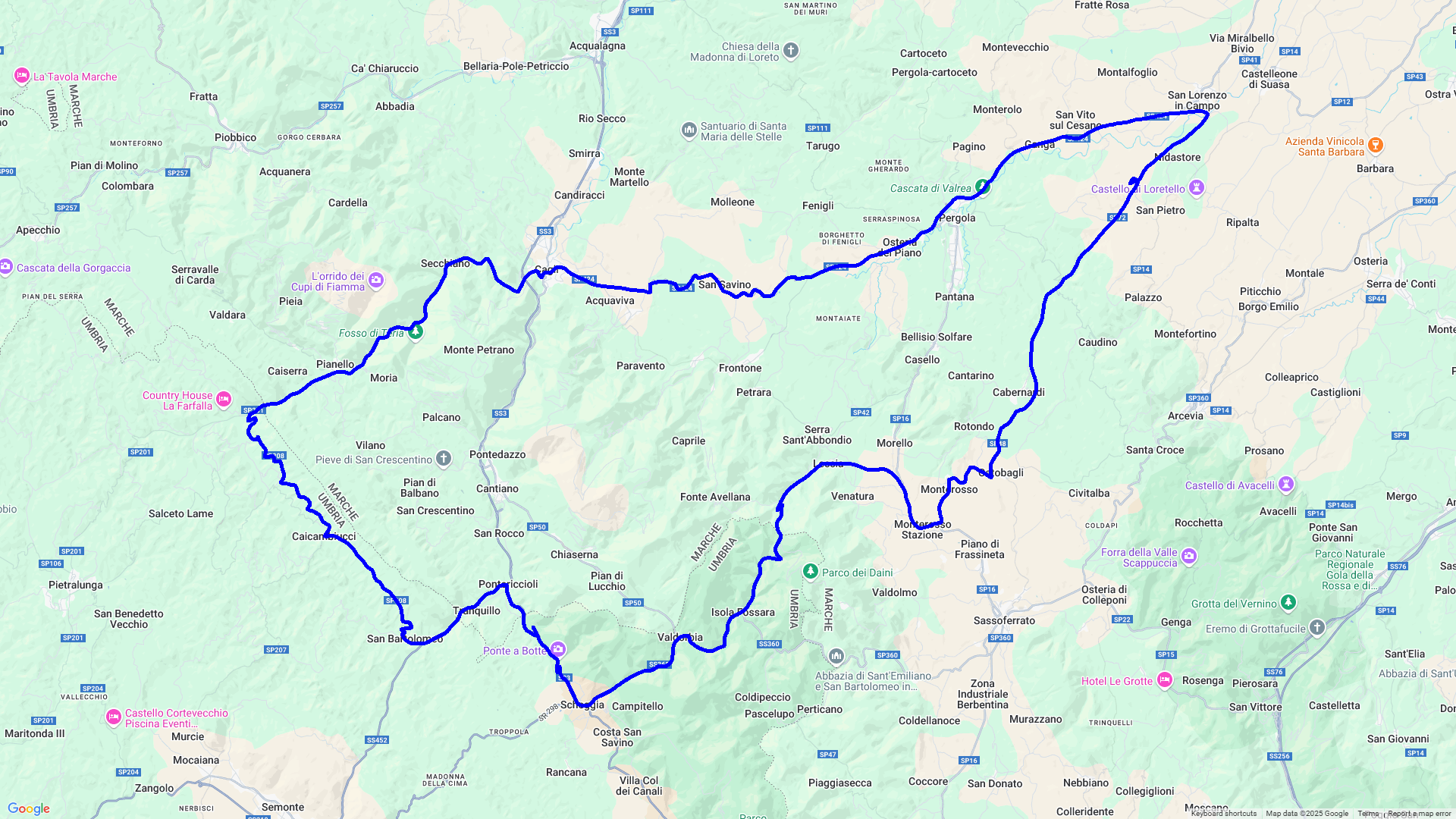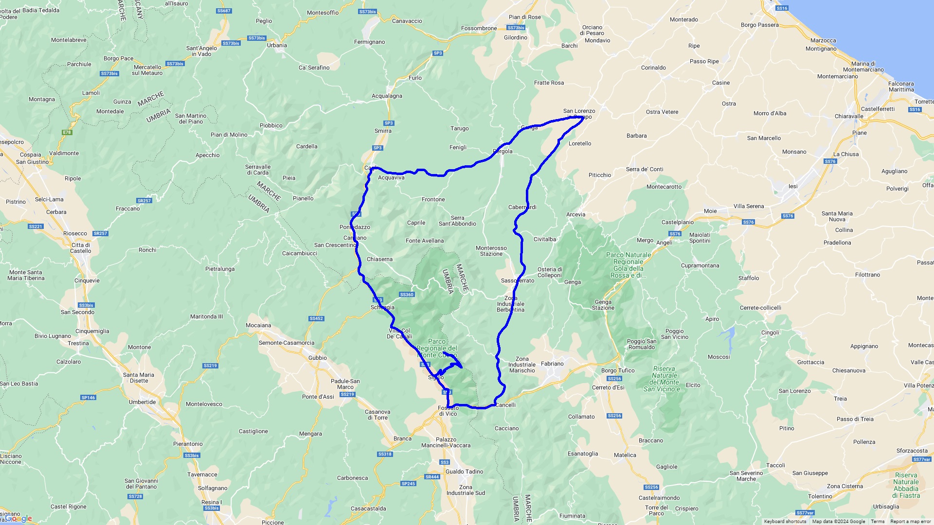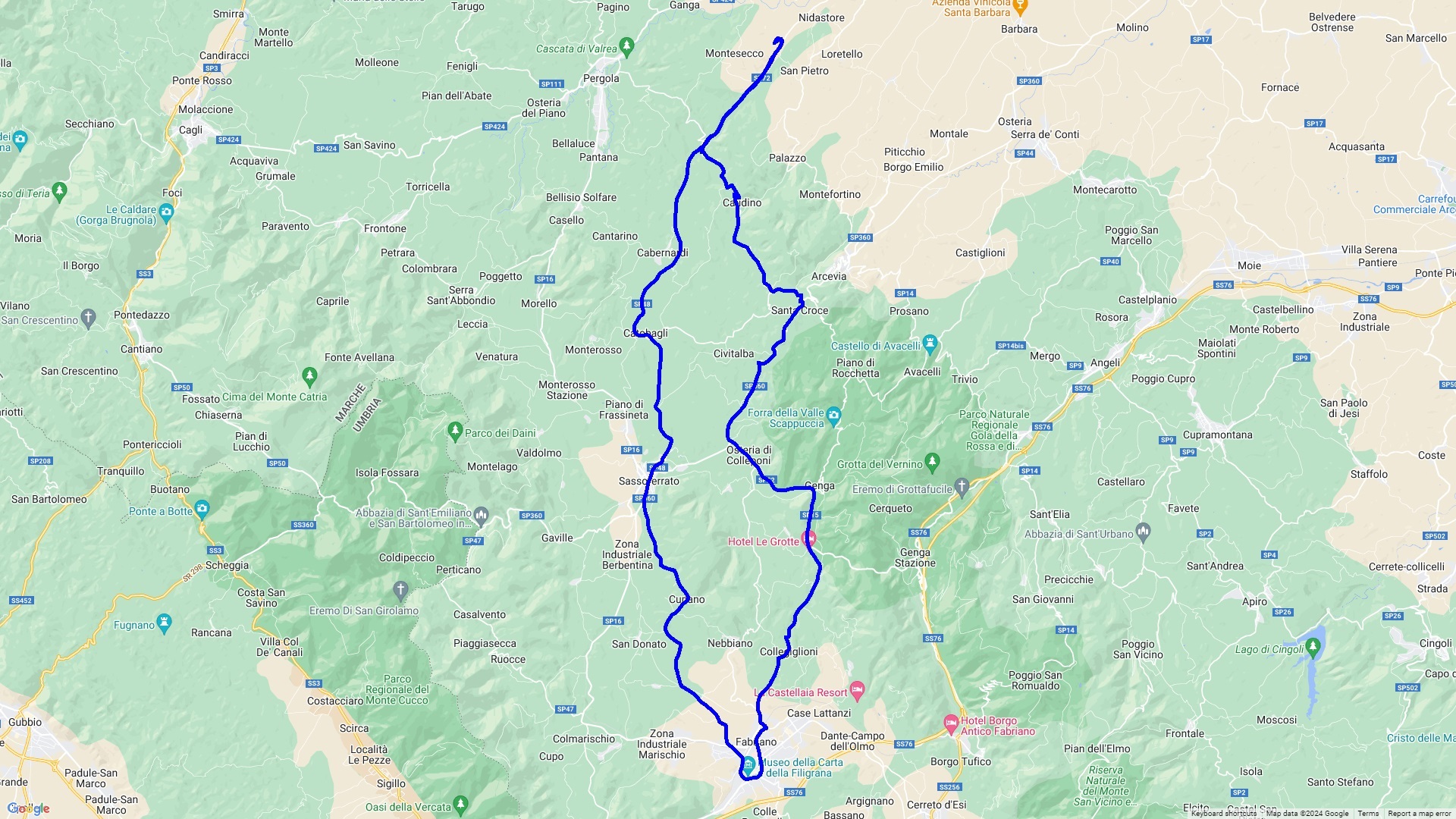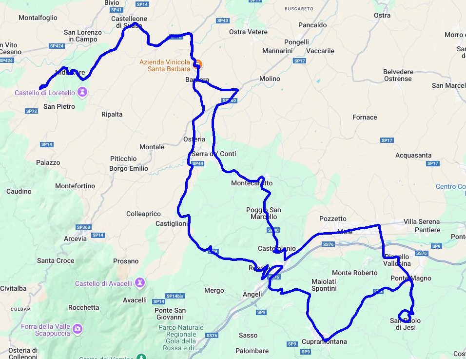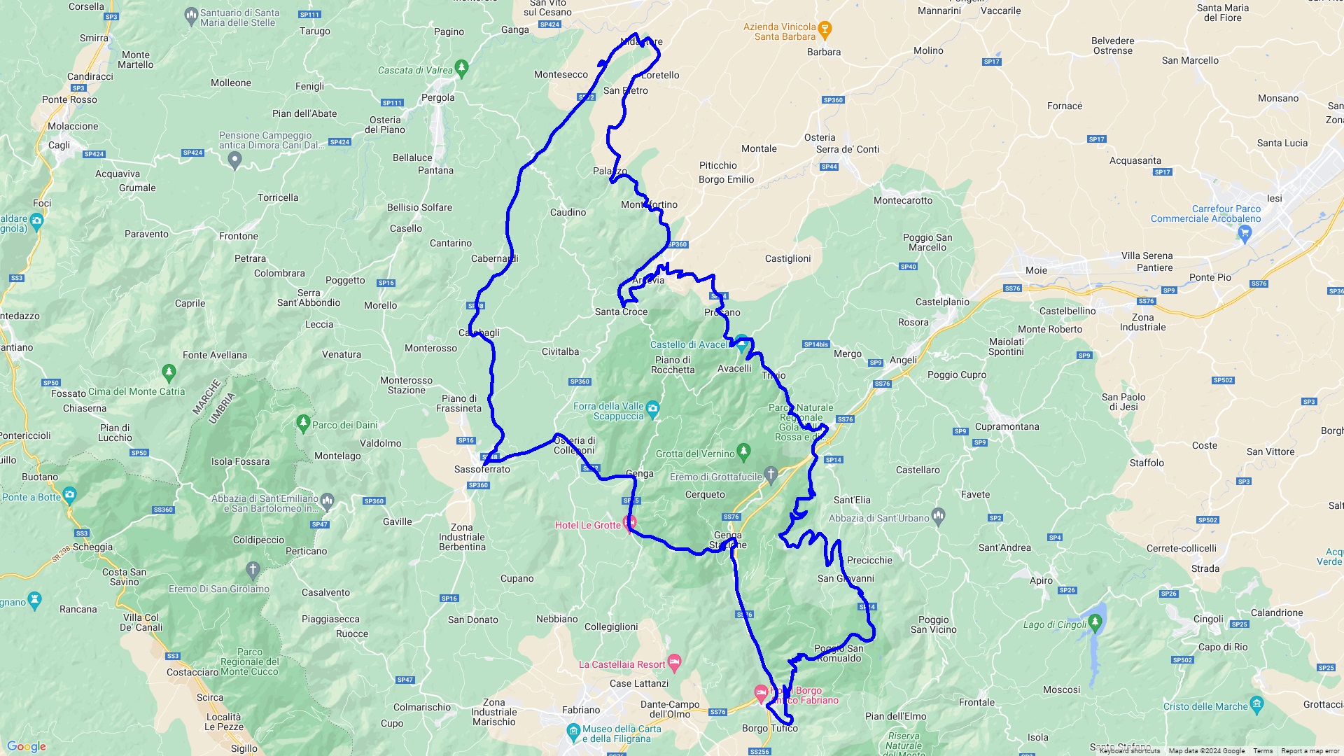 Auf dieser Tour folgen wir einer Etappe der MilleMiglia 2020 von Pergola nach Fabriano, wo die Mille-Teilnehmer Mittagspause gemacht haben. Man beachte, diese Strecke wurde von Fahrzeugen absolviert die älter als Baujahr 1957 waren. In Fabriano, der Stadt des Papiers mit einem Papiermuseum, laden zahlreiche Bars und Restaurants zum Verweilen ein.