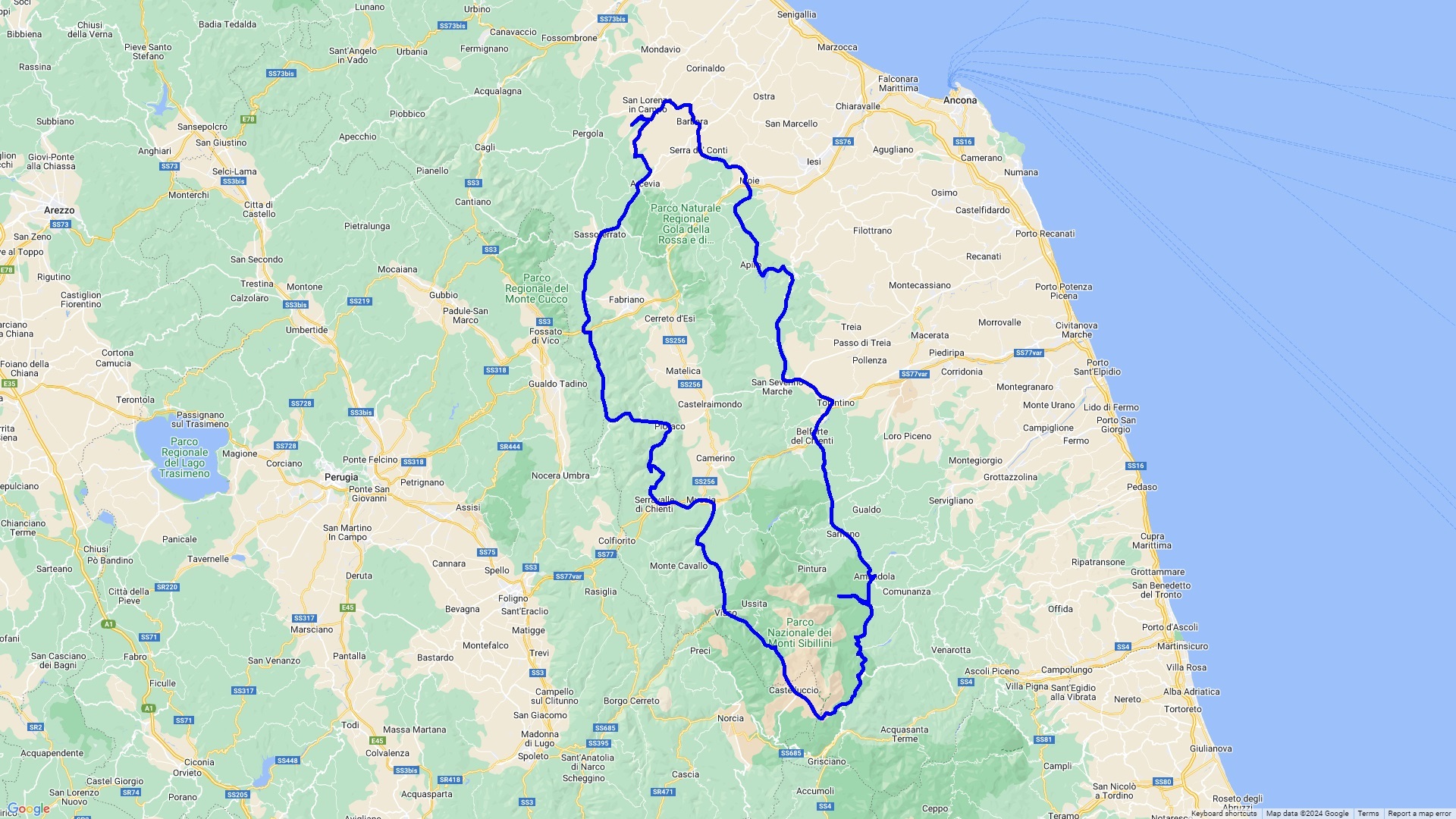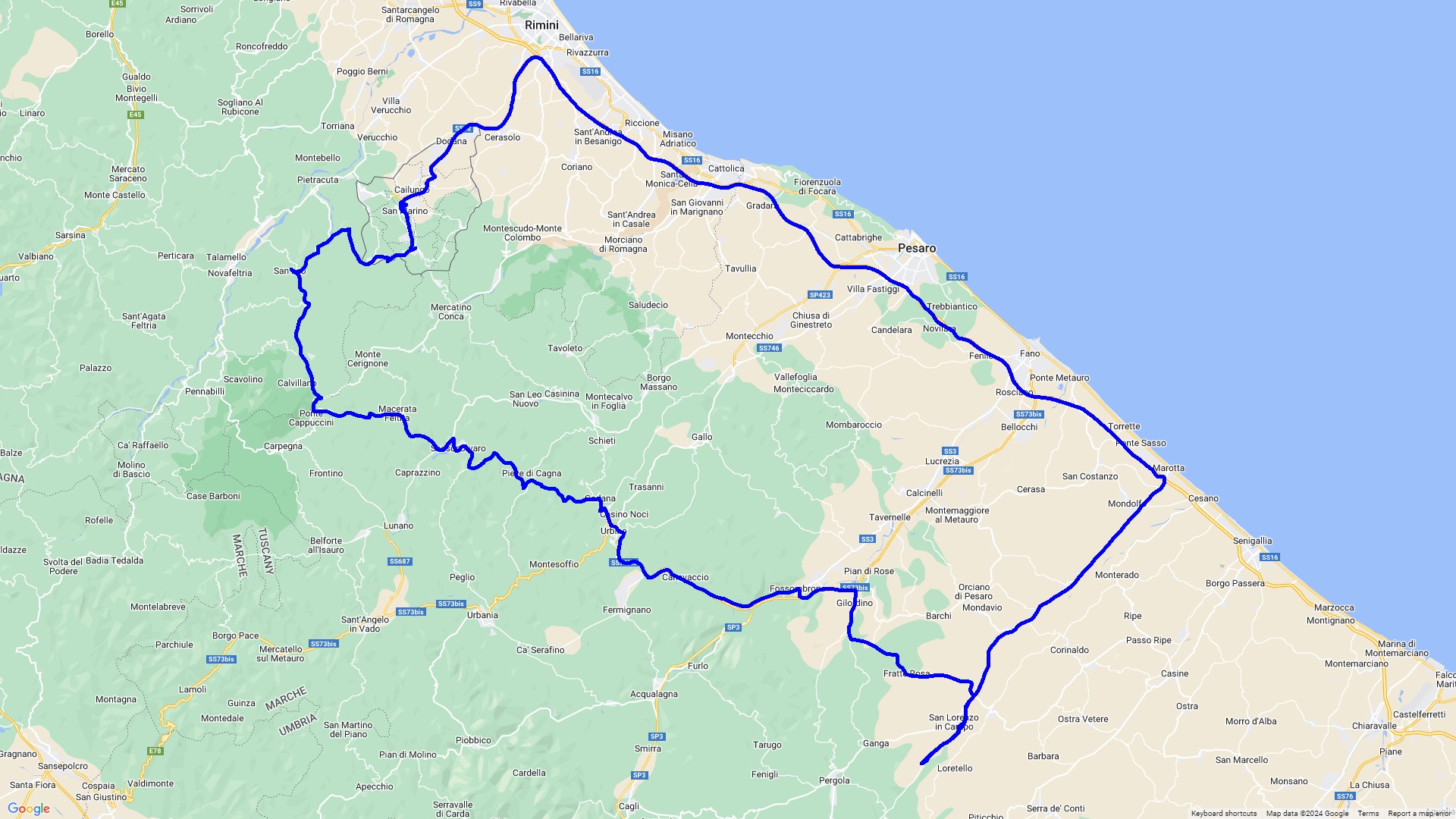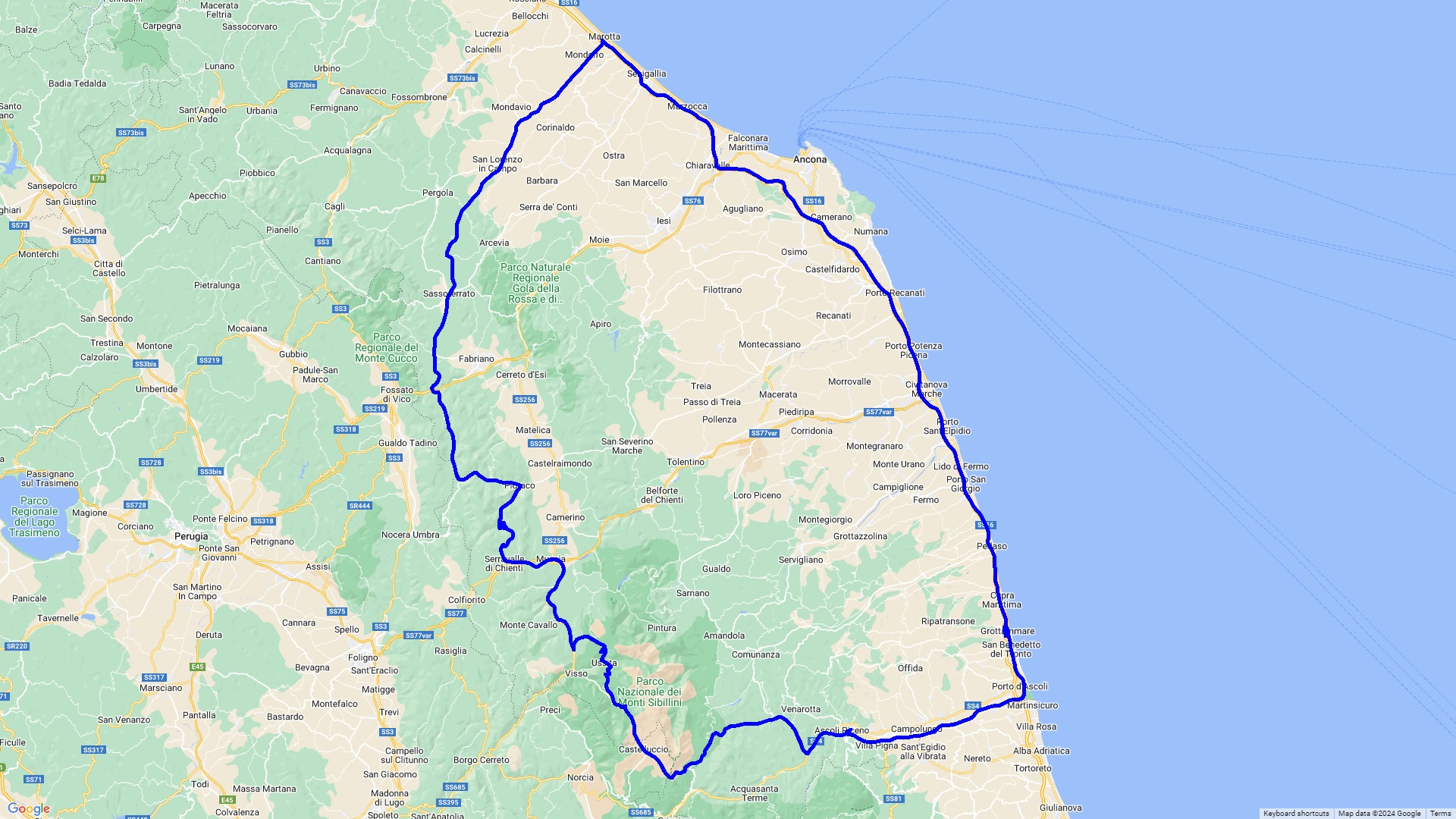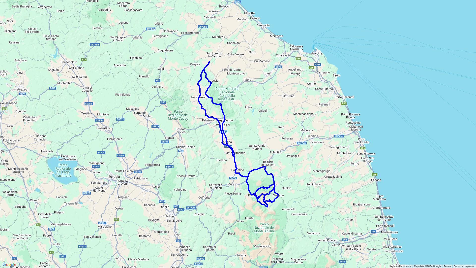 Diese Tour führt durch den Nationalpark Monti Sibillini, welcher an die höchsten Ausläufer des Apennins grenzt nach Grottamare einem wunderschönen Küstenstädtchen an der Adria mit tollen Restaurants mit Meerblick. Die Rückfahrt erfolgt aus Zeitgründen über die mautpflichtige Autostrada.